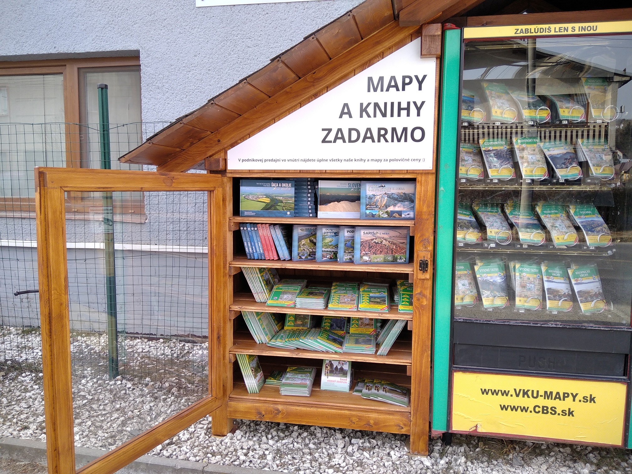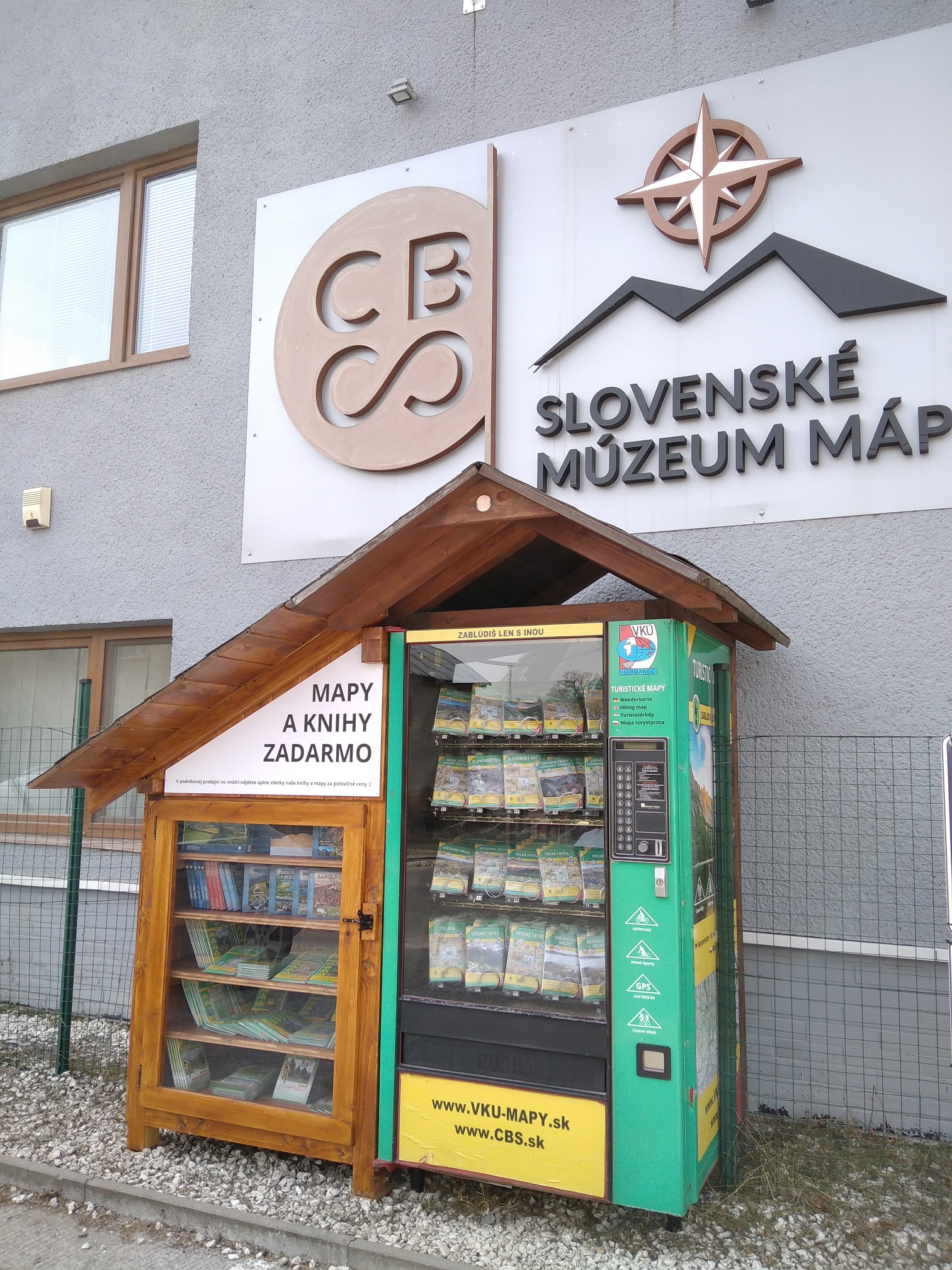 Novinka, ktorá pribudla v posledných dňoch pred budovou múzea máp, si všimnú aj okoloidúci, ktorí ešte neabsolvovali prehliadku v expozícii. Pri mapomate, ktorý vydáva aktualizované turistické mapy sa nachádza skrinka, do ktorej môže nahliadnuť ktokoľvek. Z nej si môžete vziať akúkoľvek mapu či knihu, a to úplne zadarmo. „Mnohých to prekvapilo a ešte sa radšej prišli aj osobne spýtať, či si skutočne môžu vybrať zo skrinky čo chcú. Táto myšlienka, aby rôzne mapové diela a knihy boli zadarmo, vznikla vo vydavateľstve CBS, ktorá je zriaďovateľom Slovenského múzea máp. Sú to vlastne vyradené knihy a mapy, ktoré sa pri preprave istým spôsobom poškodili,